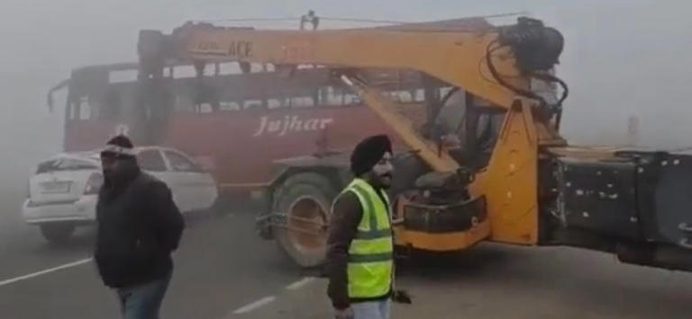 A multi-vehicle collision on the highway near Ajnaud village in Doraha, Ludhiana district, caused by poor visibility on Sunday morning, left one person dead and five others injured.