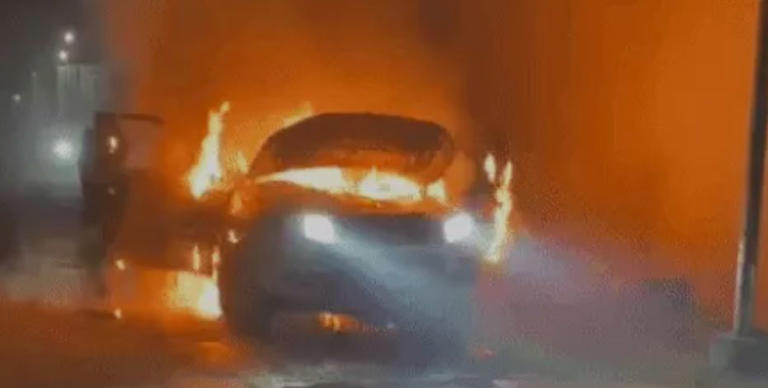 Near Agwar Lopon village in Jagraon, a car carrying three individuals caught fire late at night. The passengers escaped safely after noticing the flames, and the fire brigade was dispatched to control the situation.