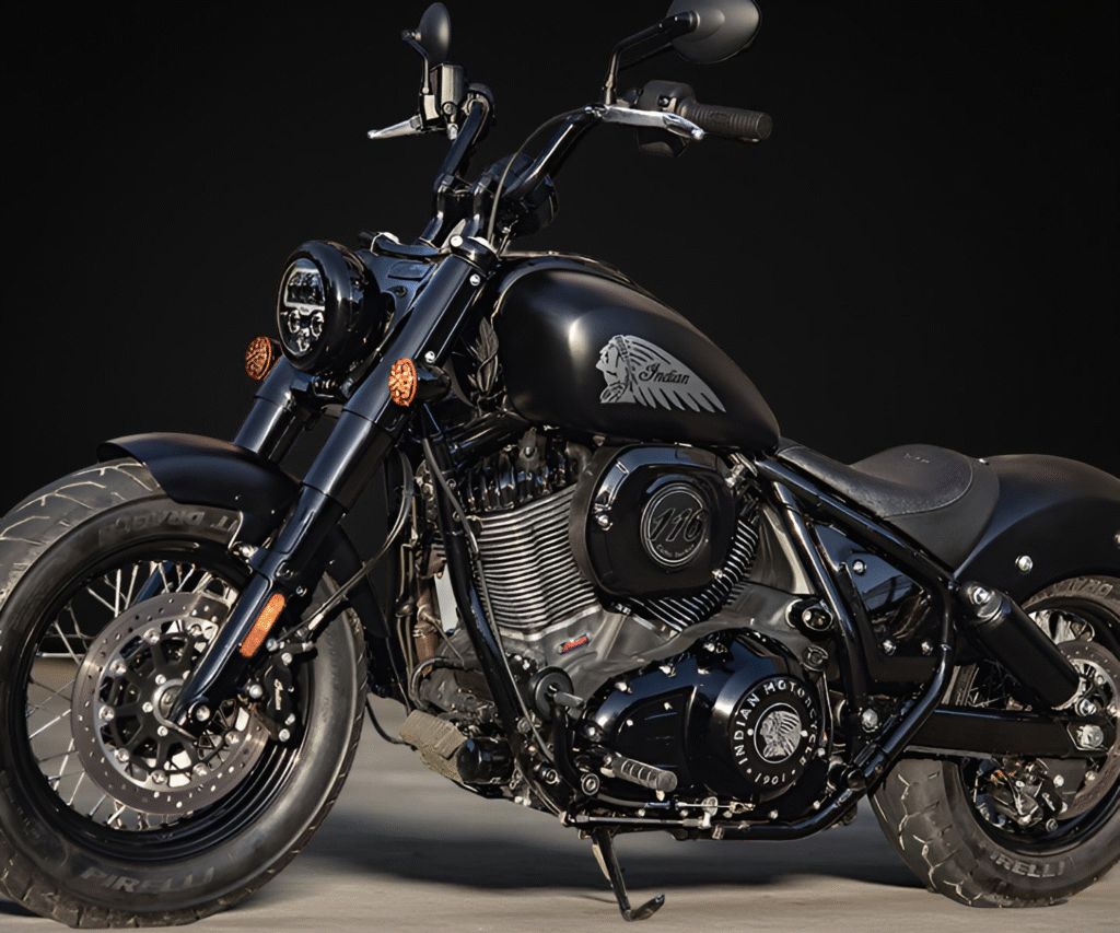 The Indian Chief Dark Horse is powered by a Thunderstroke 1,890 cc twin-cylinder, air-cooled engine, paired with a six-speed gearbox for smooth and responsive performance. This BS6-compliant engine delivers a peak torque of 162 Nm at 3,200 rpm, ensuring strong acceleration and effortless cruising on highways. Coupled with a 15.1-litre fuel tank, the bike offers extended riding range, making it ideal for long journeys. Its blacked-out design, low-slung seat, and aggressive stance complement the powerful engine, creating a motorcycle that blends performance, style, and practicality in one commanding package.
