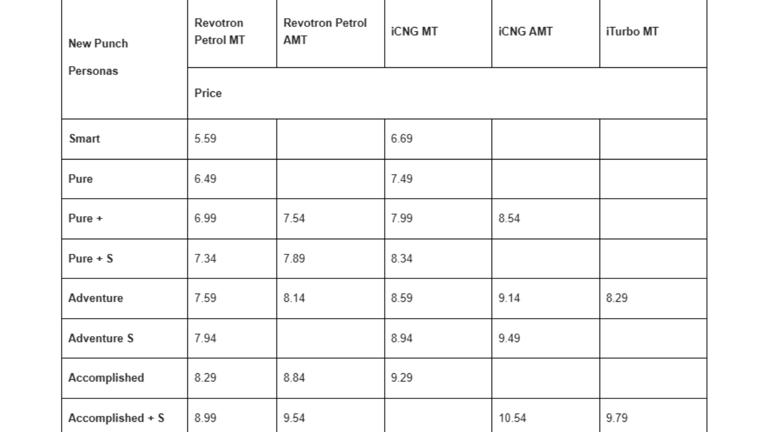 Tata Motors has rolled out the Punch facelift in eight variants, ranging from Smart to Accomplished Plus S. Buyers can opt for a single-pane sunroof on Pure+ and Adventure trims for an additional ₹35,000. The refreshed Punch starts at ₹5.59 lakh, marking only a ₹10,000 rise from its 2021 debut price. While the top-end NA petrol variant is now more affordable, the newly introduced turbo-petrol version is priced ₹40,000 higher and brings extra features.